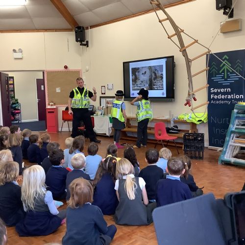 PC Greg Steer visited the school to deliver a fantastic talk on the role of the police. Greg set up a pretend crime scene, involving some children dressing up as police officers arresting Mrs Pritchard, who played the part of the criminal. The children asked Greg a number of questions about the role of the police and very much enjoyed the hands-on talk.