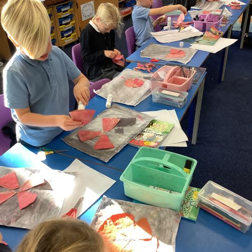The children created a Poppy picture  using watercolours, a coffee filter and black card